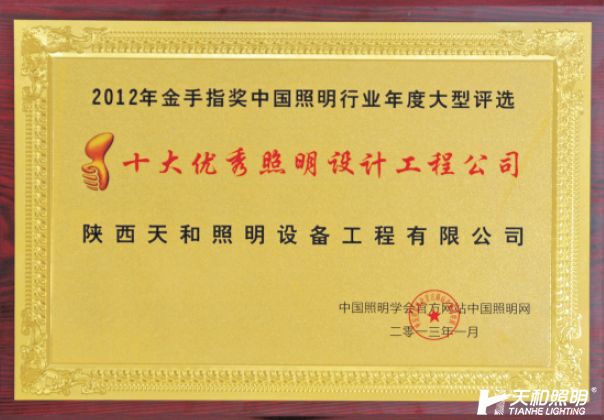 2012年榮獲中國照明學會第七屆中照照明獎“優秀提名獎”